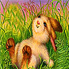 Tired funny rabbit in the garden puzzle Game.